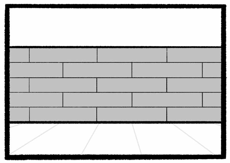 Say we want to create a drawing looking down the length of a very long wall. A perfect opportunity for linear perspective to show its worth! The wall starts on the left side of the frame and as we look across to the parts of the wall that are further and further away from us we see that it appears to get smaller and smaller until as we reach the horizon and the wall extends to infinity its height and width become so incredibly small that it vanishes, into a single imperceptible dot that we call a vanishing point. It's wonderful, it follows the rule exactly, linear perspective has done it again!